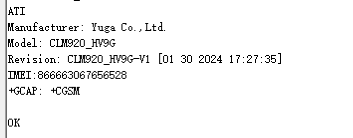 通过串口工具发送 ATI 核对版本信息。