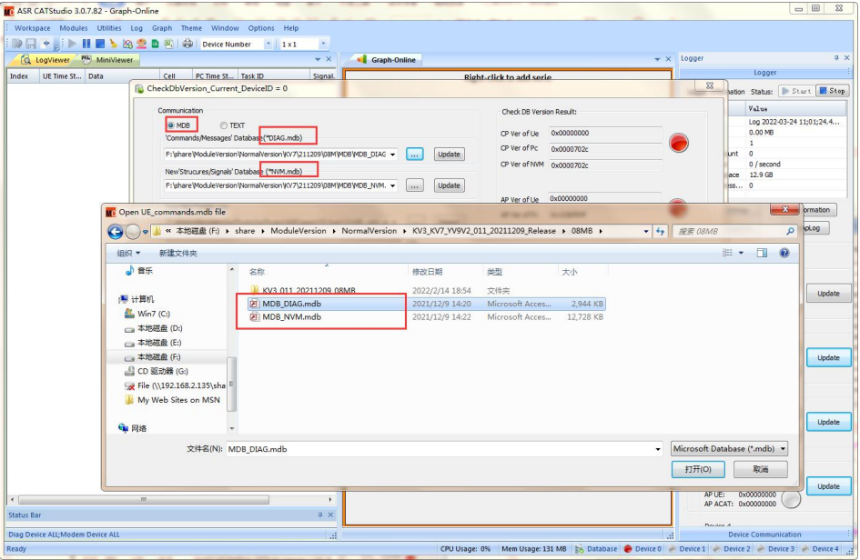 匹配 DB 文件。进入主界面后,点击界面右侧第一个 update 按钮,目录下对应模块版本的 mdb 文件。选完 mdb 文件后单击右边的 update 按钮,右上角的圆形变成绿色代表成功,之后点击右下角 close 即可。