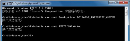 bcdedit.exe -set loadoptions DDISABLE_INTEGRITY_CHECKS