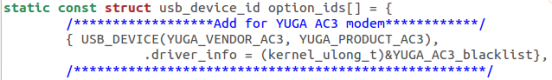 ② kernel 版本支持 blacklist 的,在 option.c(一般位于内核目录下的drivers/usb/serial/option.c)中的 option_ids 中直接添加blacklist,让驱动在加载时自动跳过blacklist指定的interface。