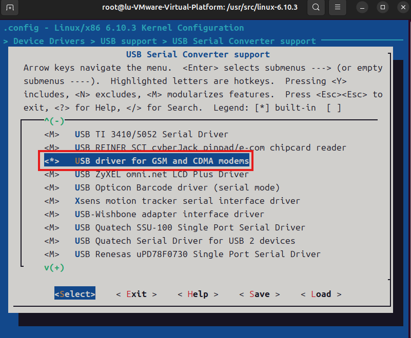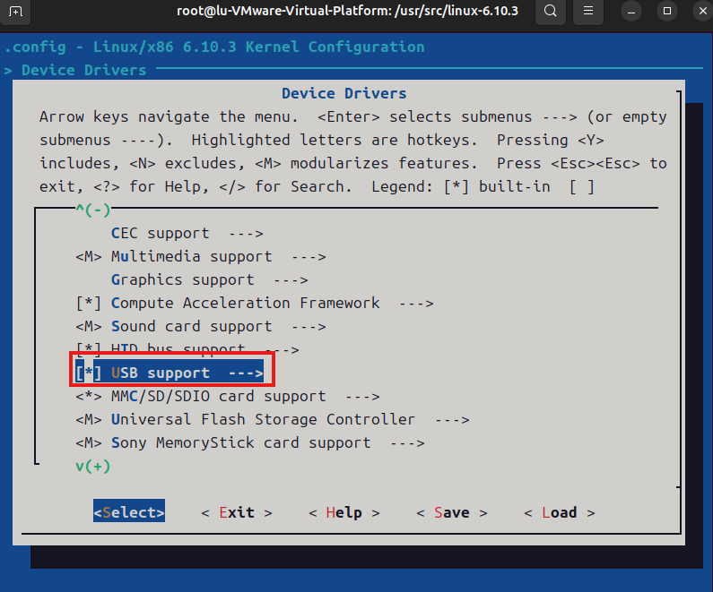在内核源码下执行 make menuconfig,打开如图所示并选中配置。