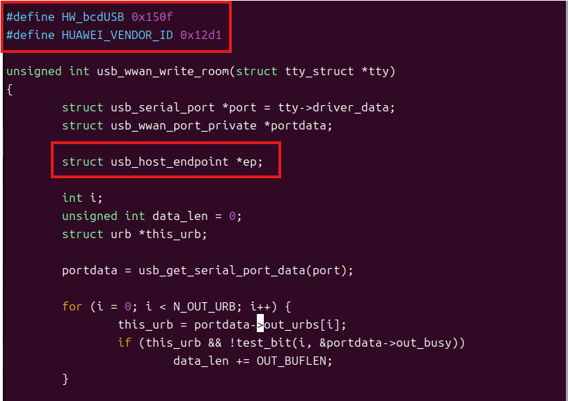 步骤 2 在 usb_wwan_write 函数内增加定义:struct usb_host_endpoint *ep;
