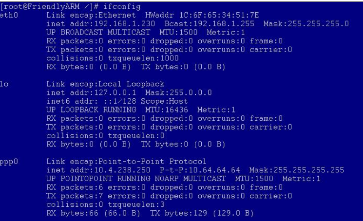 步骤 3 上位机出现 ppp0 网卡表示连接成功,可通过 ifconfig 命令查看,如下: