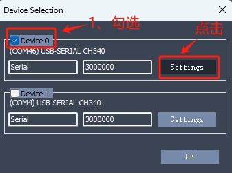 将会弹出 Device 设置对话框。