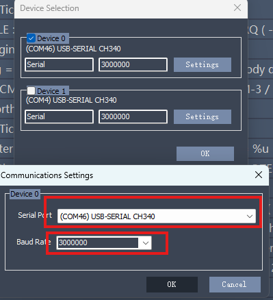 设置连接参数(这里波特率必须3000000)