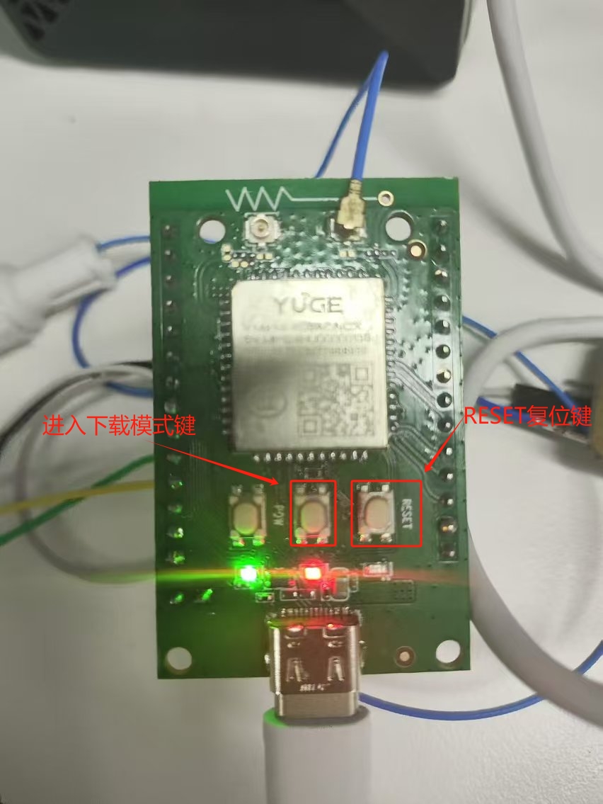 5、按住中间按键通电或者按住中间键按reset键进入下载模式