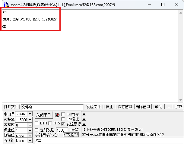 8、确认网络和升级是否正常完成(因升级的这版本不支持USB,用串口打开看是否升级成功)